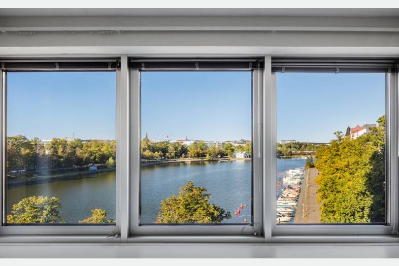 Tästä vuokrattavasta toimistosta on upeat merinäköalat jopa kolmeen eri suuntaan. Selkeä pohjaratkaisu mahdollistaa eri toimintojen tehokkaan istuttamisen tiloihin. Oheiset havainnekuvat havainnollistavat tilojen mahdollisuuksia.