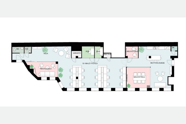 Tämä näyttävä kohde sijaitsee arvokiinteistössä aivan Helsingin ytimessä. 3.kerroksen toimitila on juuri remontoitu modernein värivaihtoehdoin ja skandinaavisin materiaalein upeaksi avotoimistoksi, jossa on muutama erikokoinen neuvottelutila. Tilaan kaksi sisäänkäyntiä.