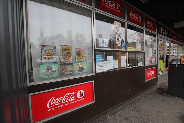 Vuokrattavana Myllymäen liikekeskuksesta pitkään pikaruokaravintolana toiminut liiketila.