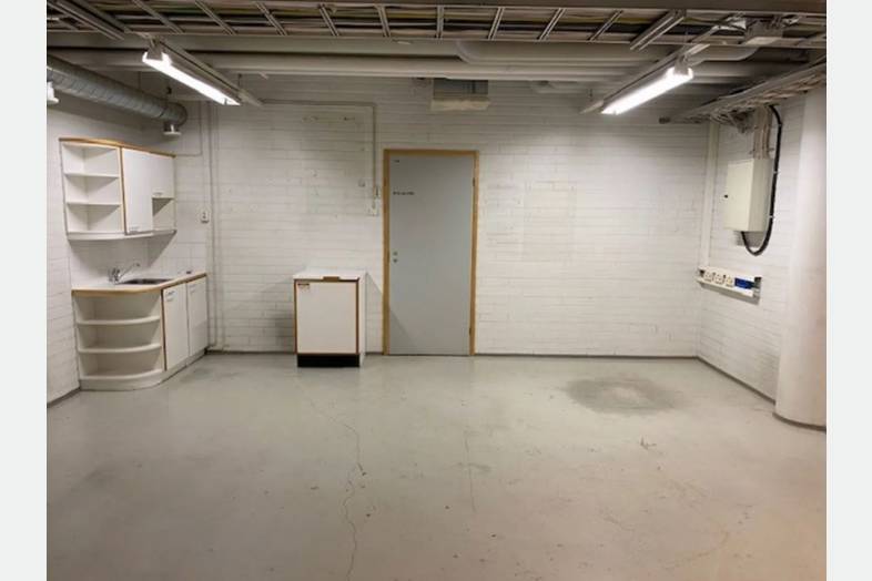Vuokrattavissa 267m2 varastotila kiinteistön 1. kellarikerroksesta. Varasto-osuudessa on tehty huonejakoja kevyillä väliseinillä. Lisäksi tilassa on kaksi wc-tilaa, 2 suihkua ja minikeittiö. Sisäänkäynti tilaan tapahtuu autohallin kautta tai hissiaulasta. Tilaan pääsee hyvin mm. rullakolla.