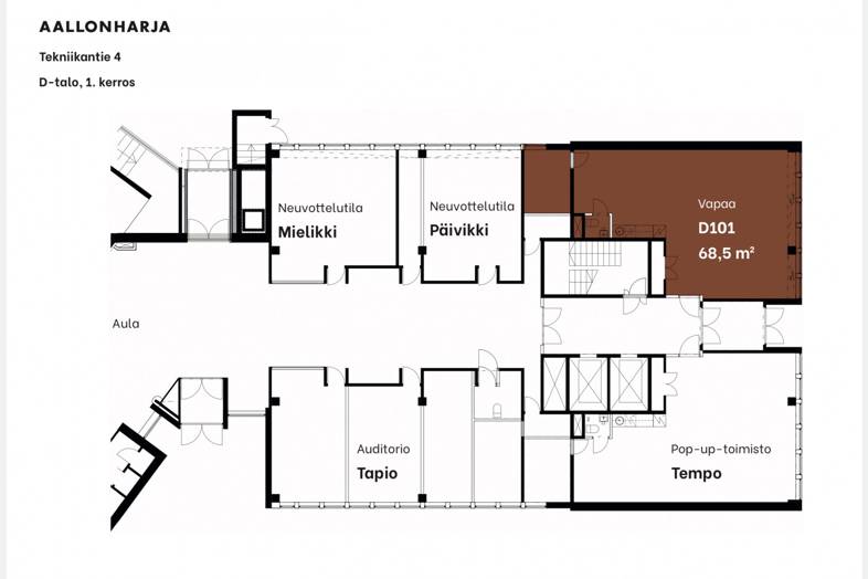 Vuokrataan ensimmäisen kerroksen 69m2 toimistotila. Toimisto on remontoitua avotilaa, jossa huone, oma keittiö ja wc. Tila vuokrataan kalustettuna. Aallonharjan toimistokiinteistö sijaitsee Espoon Otaniemessä eli suomalaisen insinööriosaamisen ja huippuinnovaatioiden pääkallopaikalla. Täällä riittää ”pöhinää”, verkostoitumismahdollisuuksia sekä synergiaetuja erityisesti tekniikan alan toimijoille