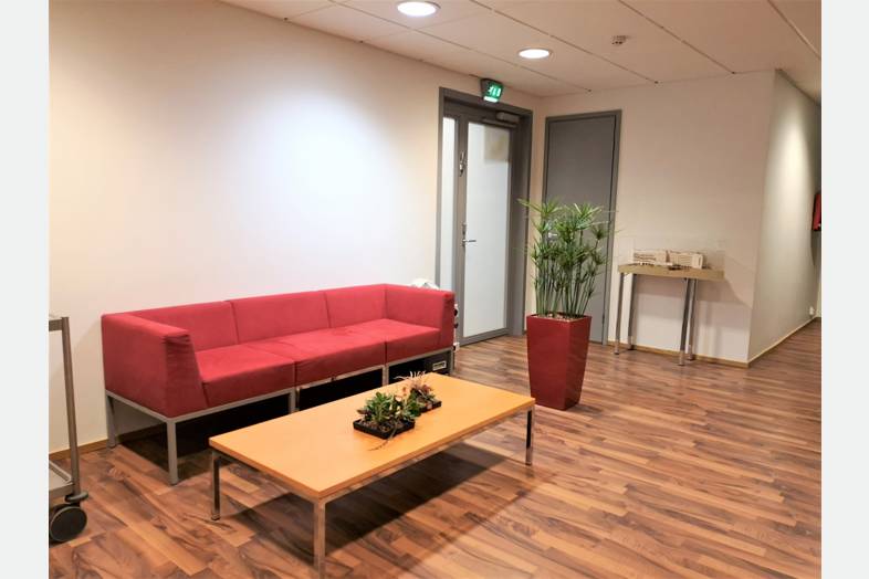 Lähellä on useita lounasravintoloita. Autopaikkoja saa vuokrattu autohallista.