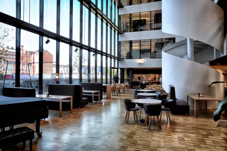 Pyöräparkkialueet ja klubifillarit veloituksetta. On mahdollista vuokrata hydridiauton.