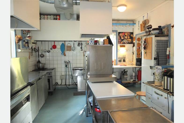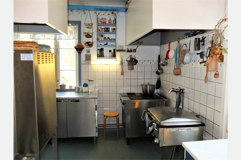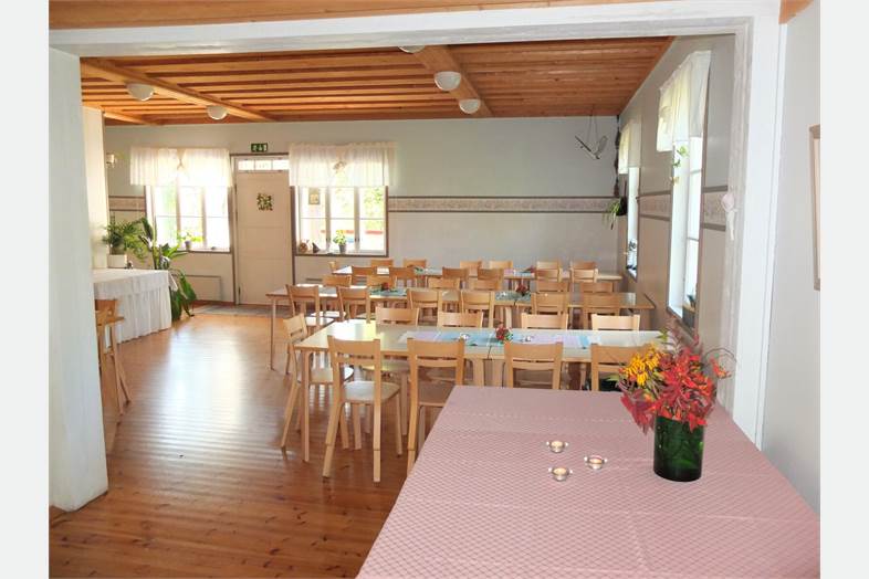 Myynnissä myös 100 hengen pitopalveluastiasto sekä ravintolasalin huonekalut. Myös majoitustilojen huonekalut myytävänä.