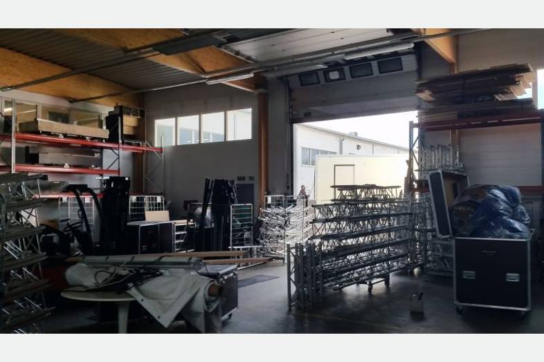 Katutason tilaa, johon useita nosto-ovia. Vapaa korkeus 4.8 m. Kattoon n. 6 m. Aidattu ja asfaltoitu piha.