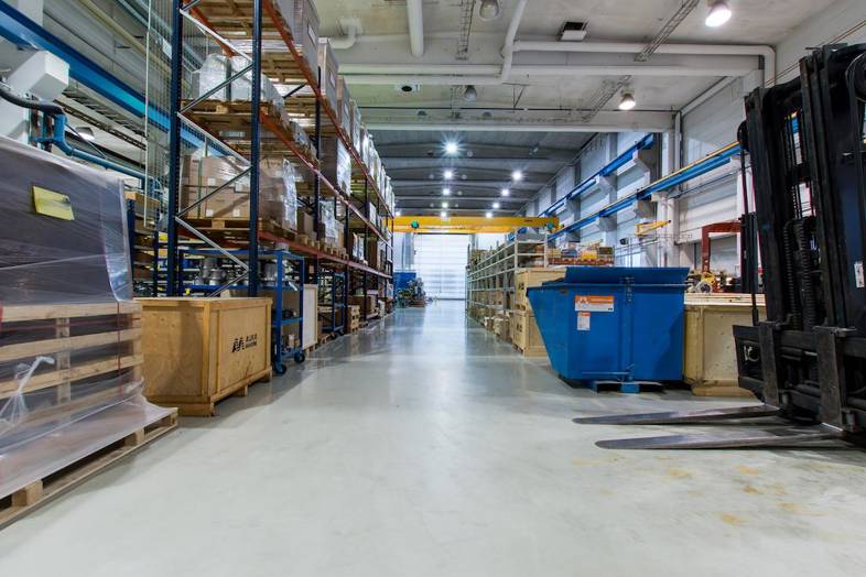 Tuotantotilat ovat hyväkuntoisia siltanostureilla varusteltuja 6,5 - 11 metriä korkeita tiloja.