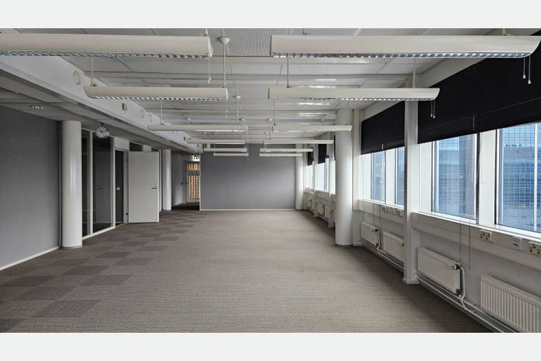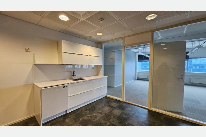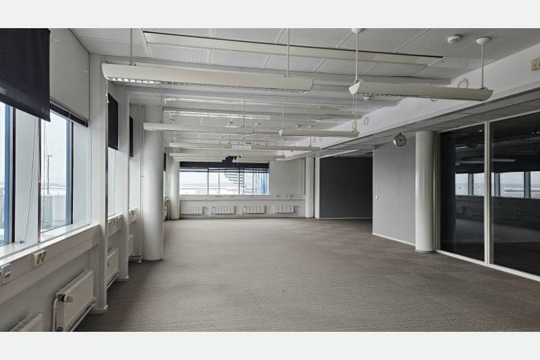Valoisa avotoimisto komein lentokenttämaisemin. Tilassa avotilaa, isompia työ- tai neuvottelutiloja, avokeittiö sekä kaksi puhelinhuonetta. Yhteen neuvottelutiloista on käynti porraskäytävästä, eli se soveltuu erinomaisesti esimerkiksi ulkopuolisten kanssa kokoustamiseen, kun vieraita ei haluta tuoda omiin tiloihin. Tiloihin käynti ulkoa näppärästi Hiltonin puoleisen porraskäytävän kautta.