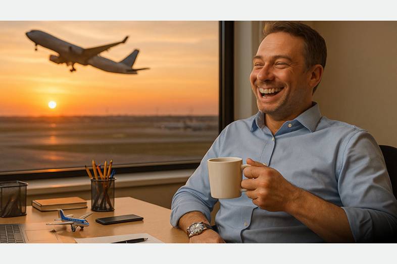 Sen kyllä näkee, kenellä on toimisto lentokentällä.