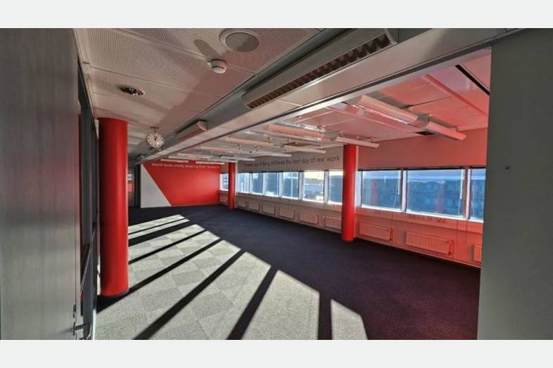 Ylimmän, 7 kerroksen toimistotila, huikein lentokenttämaisemin. Tila on nykymuotoisena pitkälti avotilaa, mutta kokonaisuudessa on myös kolme työhuonetta ja yksi suuri kokoushuone. Tiloja on mahdollista muokata tarpeen mukaan.