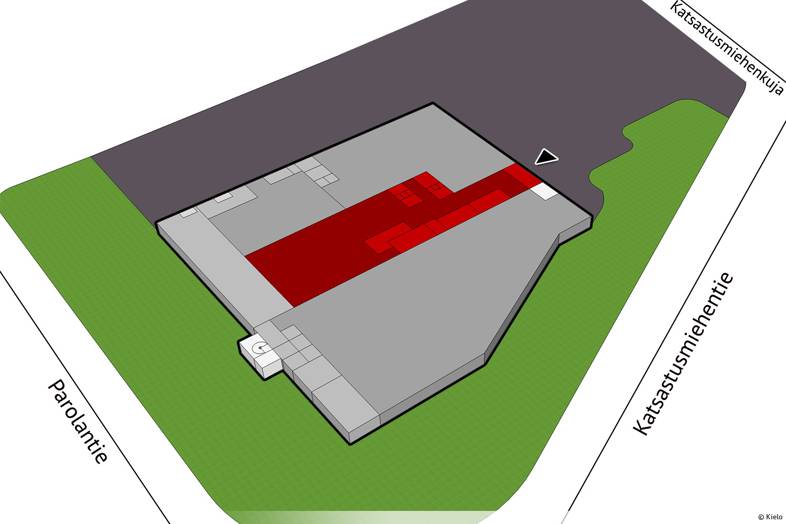Laaja pysäköintialue mahdollistaa sujuvan asioimisen.