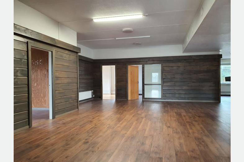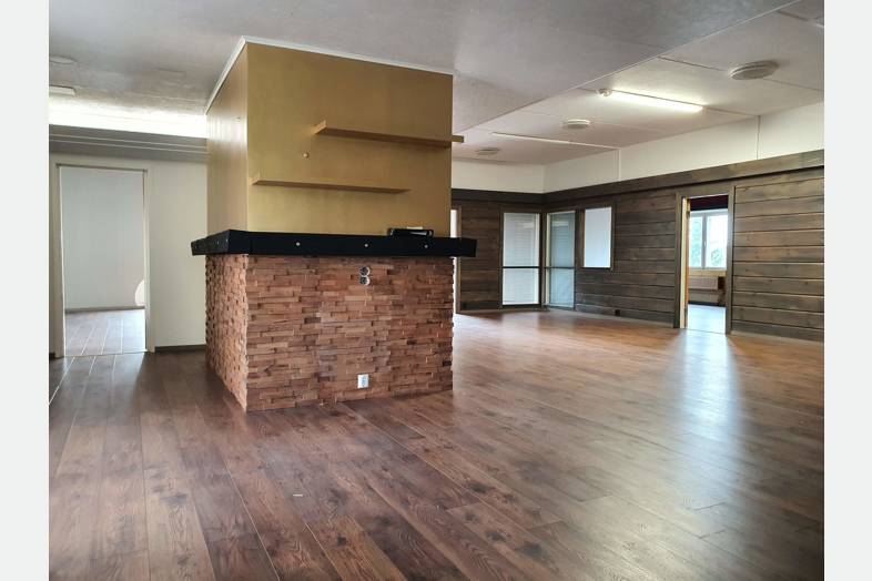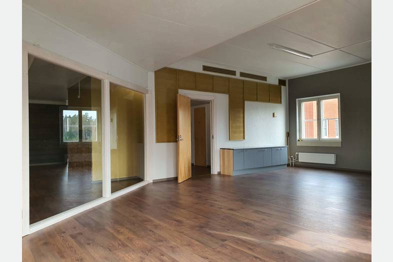 Tilassa pieniä ja isompia toimistohuoneita, neuvottelutiloja, reilun kokoinen aula, 2 keittiötilaa ja useita wc-tiloja. Tila muokattavissa vuokralaisen toiveiden mukaiseksi. Huonekorkeus n. 3 m.