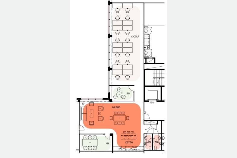 Vuokrattavana 2. kerroksen valoisa 189 m² Aina Valmis toimistotila.