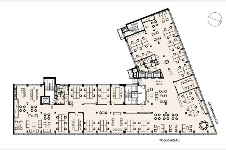 Tämä koko kerroksen toimistotila sijaitsee kiinteistön 7 kerroksessa. Toimistotilassa on on nykyjaolla: