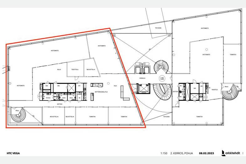 Toimistorakennuksessa on vapautumassa vuoden 2025 alusta kiinteistön toinen, kolmas ja neljäskerros. Kerroksien yhteispinta-ala on 3070 m2.