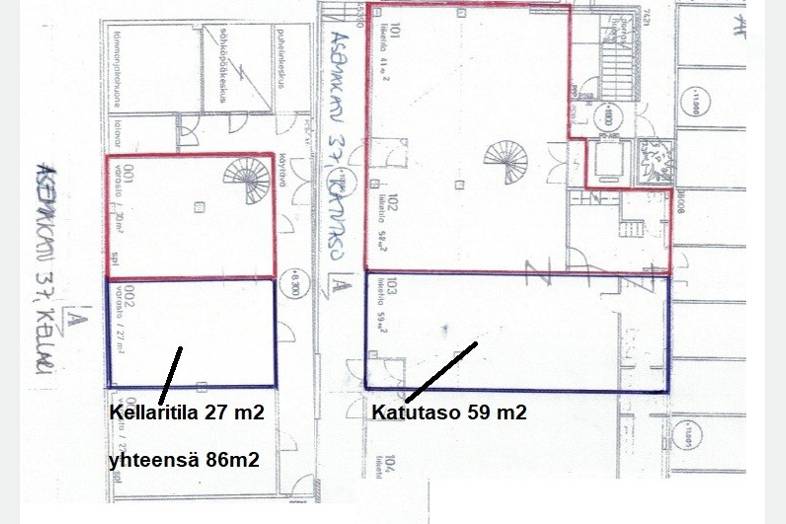 Katutasosta löytyy 59m2 liiketila ja kellarista 27m2.