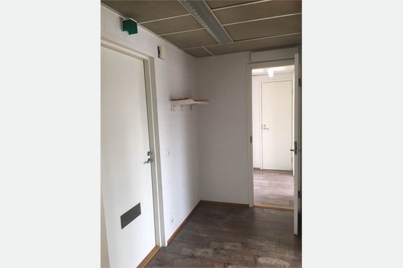 Kolme ikkunallista toimistohuonetta sekä eteinen ja keittiösyvennys, wc ja siivouskomero.
