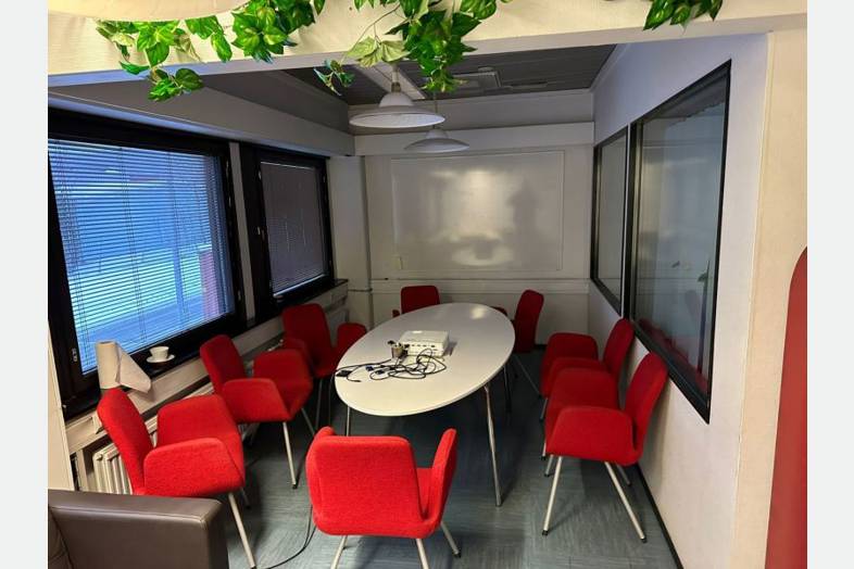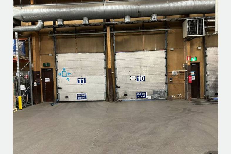 Hallin vapaa korkeus 5.5 - 6.3 m. Lastaustaskuja 13 kpl sekä ajorampin yhteydessä 2 nosto-ovea.