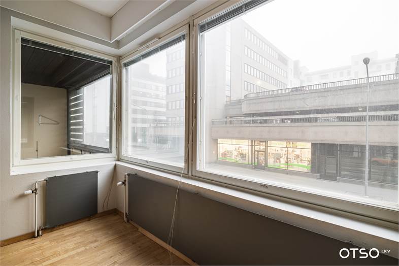 Helposti käytettävissä oleva huoneisto on aivan ydinkeskustassa, lasitettu parveke Valtakadun puolella.