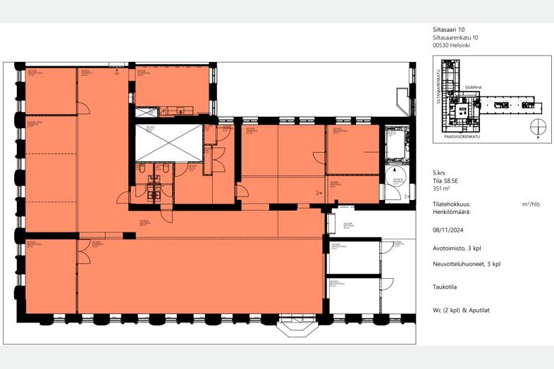 Vuokrataan muuttovalmis, hienosti remontoitu tila! Viidennessä kerroksessa vuokrattavissa valoisa toimisto, jossa isot ikkunat ja näkymät Paasivuorenpuistikkoon. Tila on tehokas monitilatoimisto, jossa on avotilaa, erilaisia vetäytymis- ja neuvottelutiloja sekä keittiölounge. Käyttövalmis heti sopimuksen allekirjoituksesta!