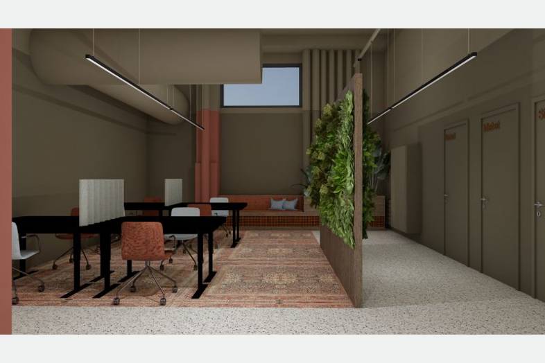 Kauppapaikka Hermannista voit vuokrata avaran liiketilan / toimitilan kahdella sisäänkäynnillä. Koko tilan pinta-ala on 344m². Toimitila sopii avotoimistoksi, suunnittelutoimistoksi, studiotilaksi. Liitteenä olevat visualisointikuvat kertovat enemmän tilan mahdollisuuksista, jos tila jaetaan isoksi avotoimistotilaksi ja kahdeksi neuvottelutilaksi. Visualisoidun pohjakuvan avotoimiston pinta-ala on 167m2 ja sen yhteydessä 22m2 kahvi-/loungetila. Toimitilassa on omat sosiaalisettilat wc:llä ja suihkulla sekä siivouskomero. Visualisoitukalustekuvassa tila suunniteltu 20 työntekijälle.