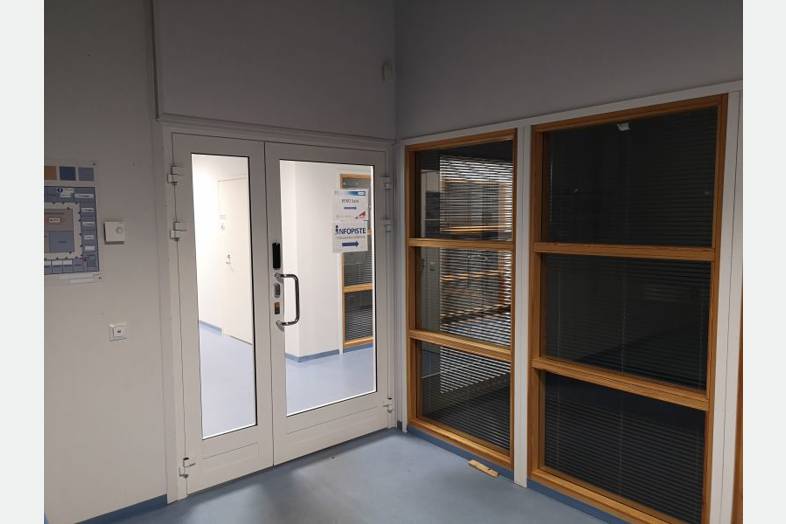 Pysäköintipaikat aivan sisäänkäynnin läheisyydessä.