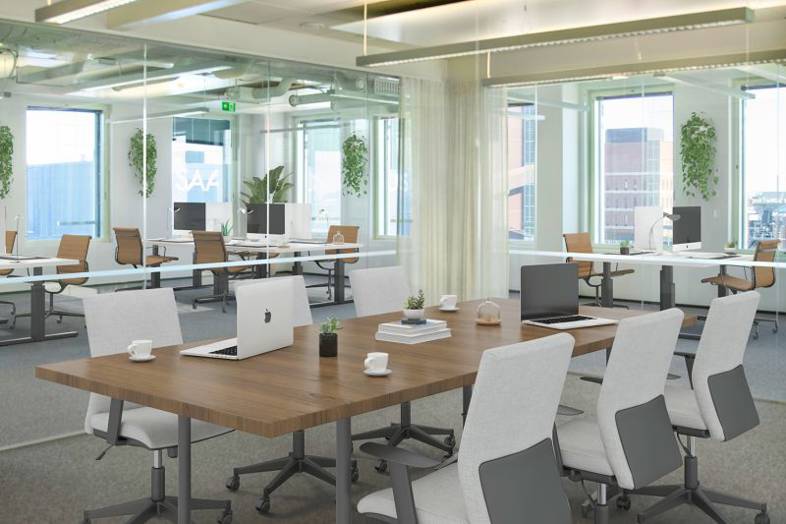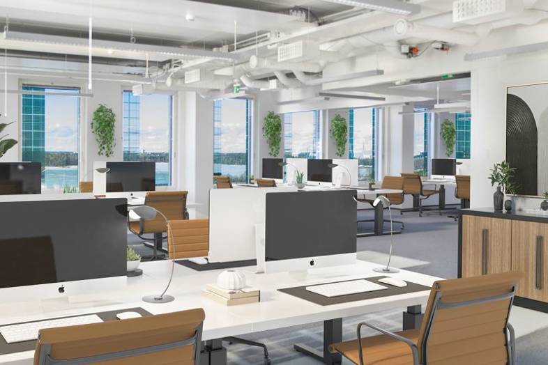 Upeaa kahdeksannen kerroksen toimitilaa näkyvällä paikalla Technopoliksen Ruoholahti 3-rakennuksesta.