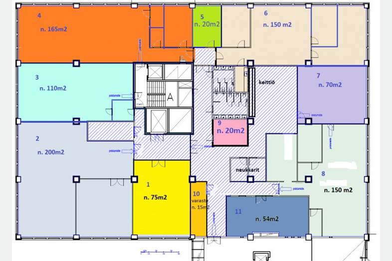 Hyvät kulkuyhteydet ja tavarahissiyhteys lastauslaiturilta.