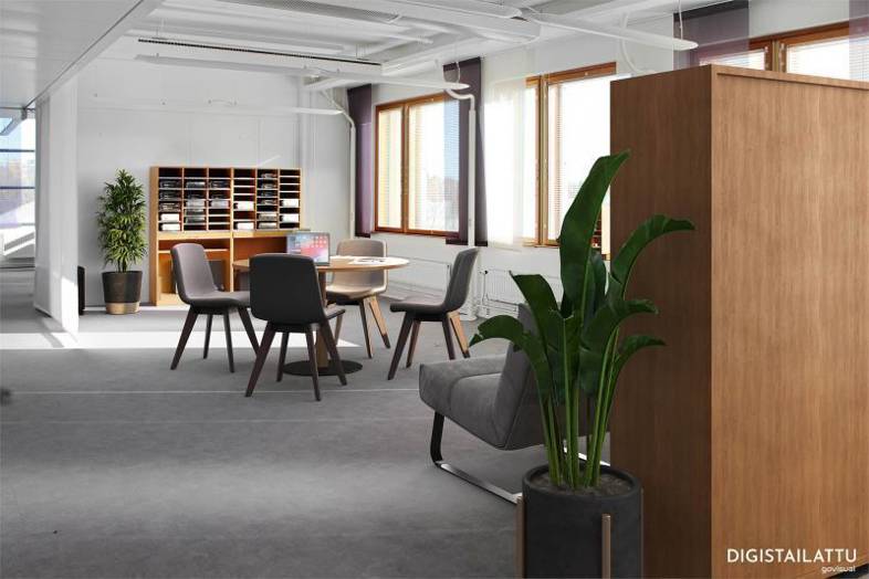 - Joustavat tilaratkaisut: Monipuolisia tilavaihtoehtoja alkaen avoimesta tilasta pienempiin, suljettuihin toimistoihin, jotka soveltuvat erikokoisille tiimeille ja tarpeille. Tilat voidaan remontoida juuri sinun tarpeidesi mukaisesti