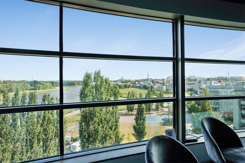 Viidennen kerroksen tyylikäs 650 m² toimistotila uskomattoman tyylikkäillä näkymillä, keskeisellä sijainnilla Meilahdessa.