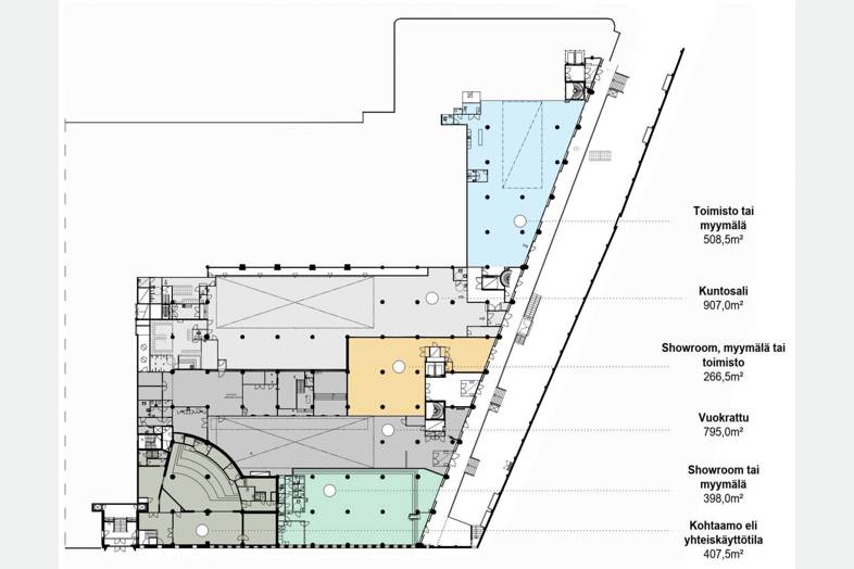 Mukautuvaa 508,5 m² showroom-/myymälätilaa Salmisaaressa