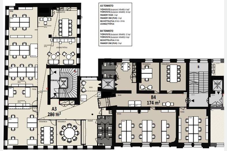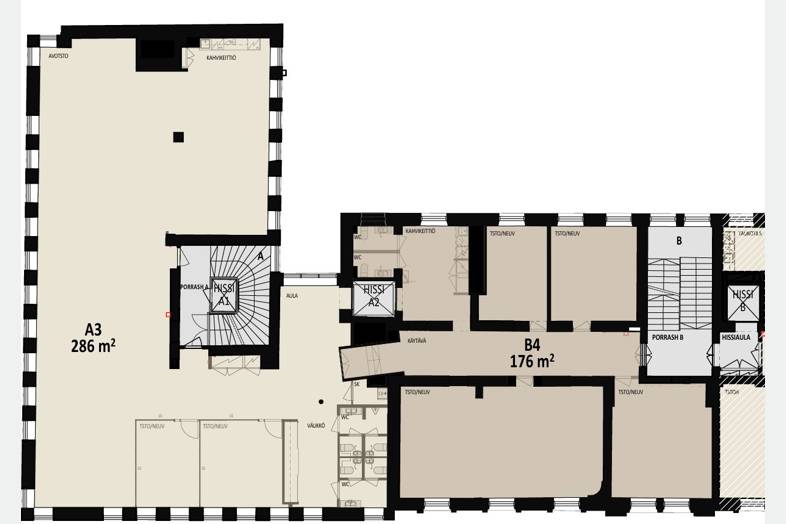 Historiallisen Kasarmitorin välittömästä läheisyydestä upea toisen kerroksen 286 m² toimisto.