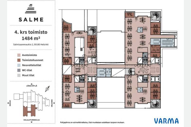 Salmisaaren ja Ruoholahden laadukas toimistokeskittymä.