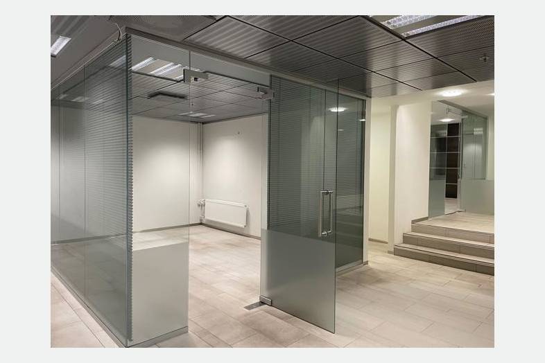 Tilakokonaisuus, jossa katutason avoimen ja valoisan liiketilan lisäksi neuvottelu-/työhuoneita, keittiö- ja taukotilat, wc-tilat sekä suihku- ja pukuhuonetilat.