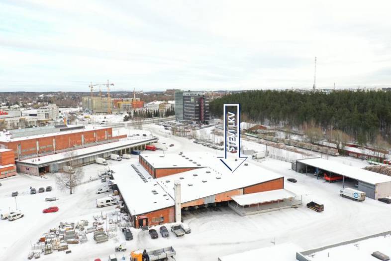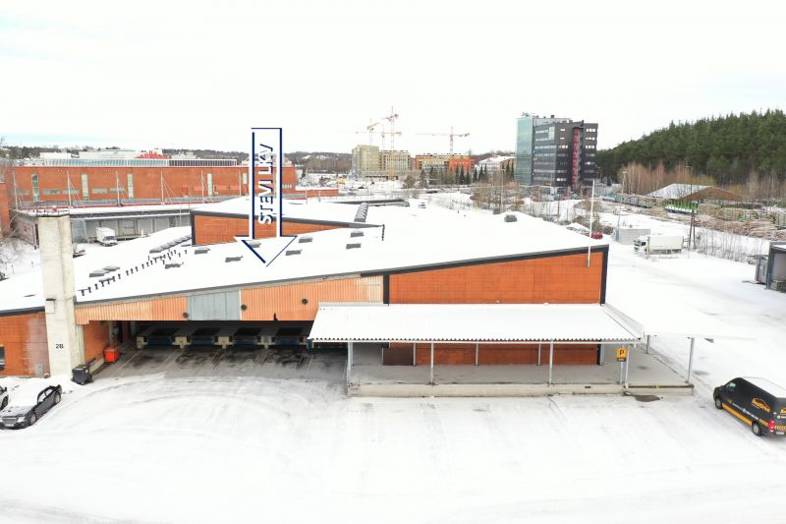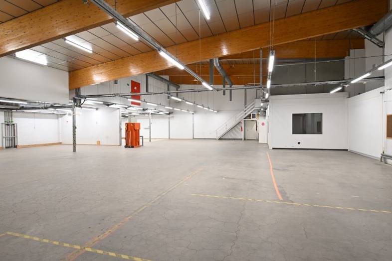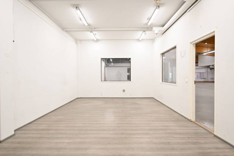 Lämmin halli 622m2 (tässä toimistot ja pukuhuoneet yms). Lastauslaituri. Vuokra 6220€/kk.