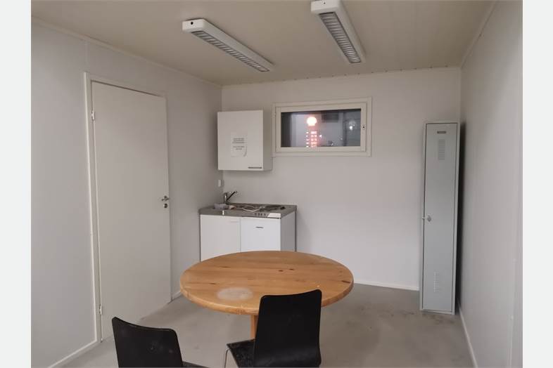 - Ensimmäisessä kerroksessa taukotila ja sosiaaliset tilat hallin takaosassa.