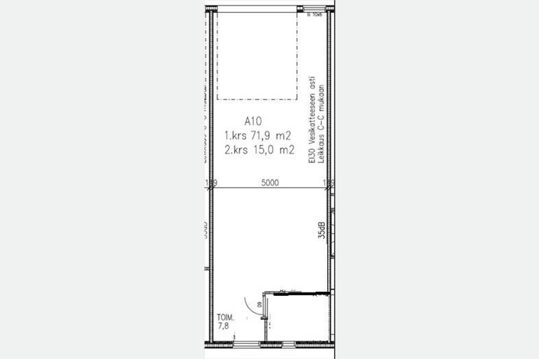- 5 metriä korkeaa hallitilaa noin 60m2, johon pääsee 3,4m korkeasta nosto-ovesta.
