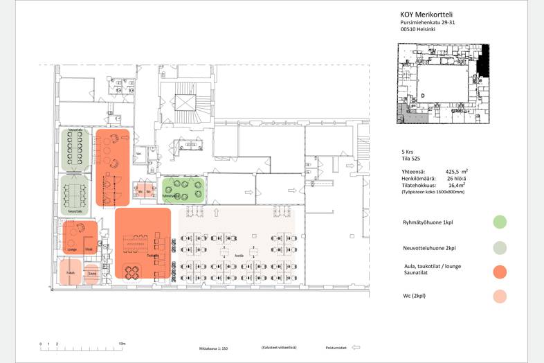 Pursimiehenkadulla vapautumassa toimistotilaa omalla saunalla viidennessä kerroksessa dynaamisessa Merikorttelissa, trendikkäiden kahviloiden ja ravintoloiden lähellä. Korkeaa, teollismaista , mutta modernia toimistotilaa. Kortteli käsittää 28 000 m2 toimitilaa yhteensä kuudessa maan päällisessä kerroksessa.. Tiloissa on suuret huonekorkeudet ja tilat ovat muuntojoustavat asiakkaiden tarpeiden ja toiveiden mukaisesti. Uniikkikohde Erinomaiset julkiset yhteydet. 15 minuutin kävelymatkan (2 km) päässä Rautatieasemalta. Raitiovaunu 1A:n päätepysäkki on juuri korttelin kohdalla. Lisäksi raitiovaunu 6 ja useita bussilinjoja pysähtyy lähellä.