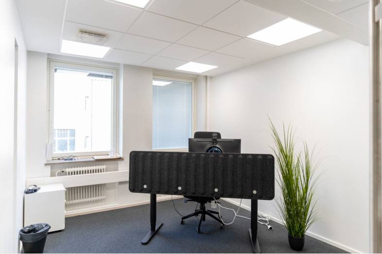 Toimistotila on rakennuksen 3. kerroksessa ja sinne on pääsy portaiden lisäksi myös hissillä. Tilassa on viilennys.