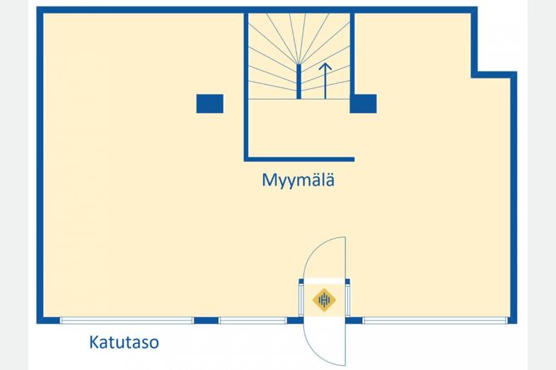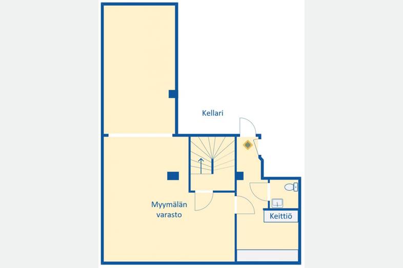 Vuokrataan Helsingin Punavuoresta 114 m² liiketila. Tilasta katutasossa on n. 50 m² ja kellarissa n. 64,5 m².