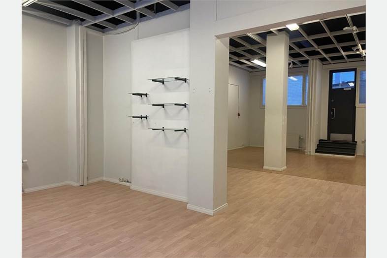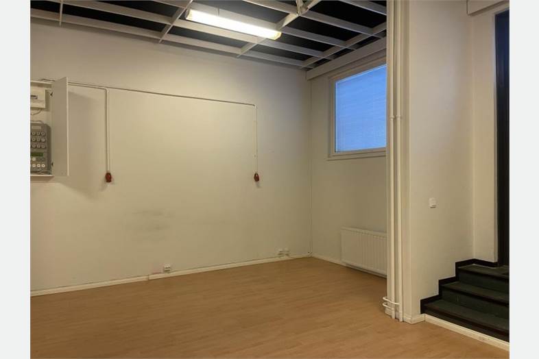 Pinta-ala 79m2 ja korkeus jopa 4m. Tilasta löytyy myös oma WC ja pieni keittiökomero.