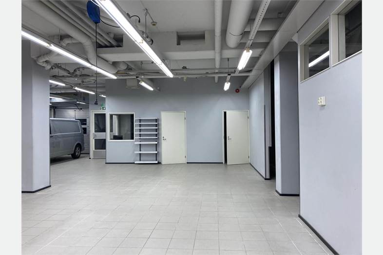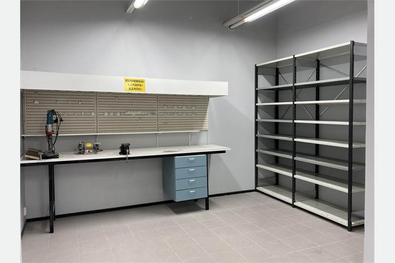 Laattalattiat, sisutusvalmiit seinät ja väliseinät, hyvä loisteputkivalaistus, koneellinen ilmanvaihto + teollisuustason ilmastointi kohdepoistoilla.