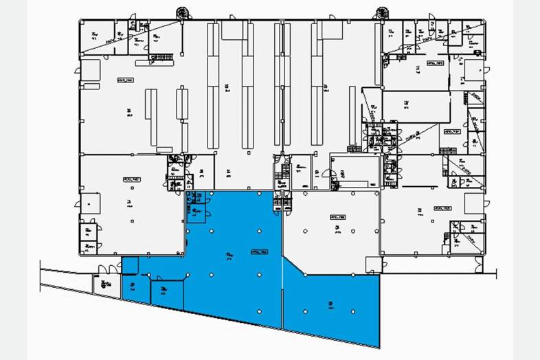 Nosto-ovi on 2,57 metriä leveä ja 2,45 metriä korkea, ja itse tila on noin 4,5 metriä korkea. Huomioithan, että tilassa ei ole lastauslaituria eikä se sovellu autokorjaamoksi.