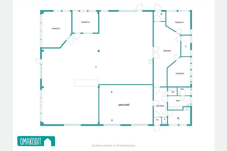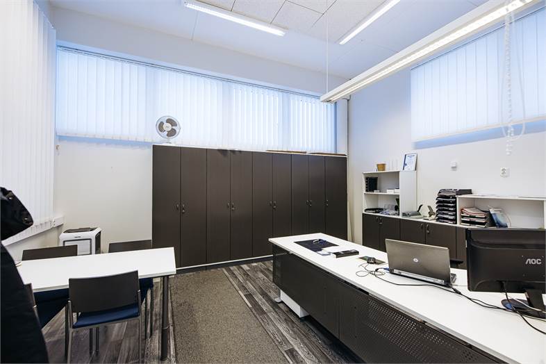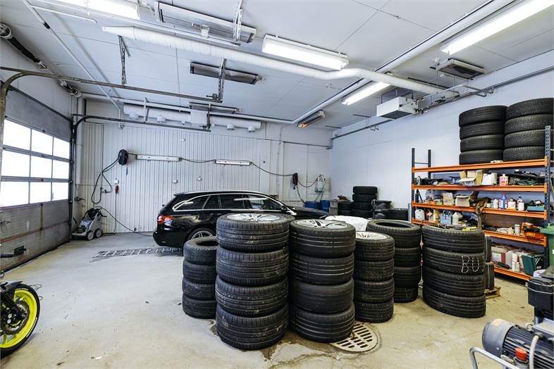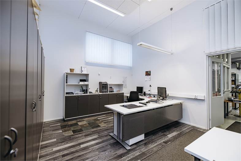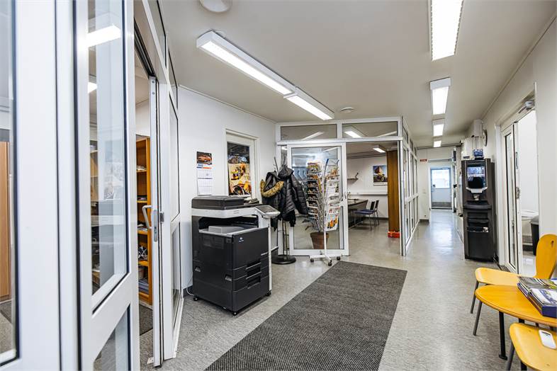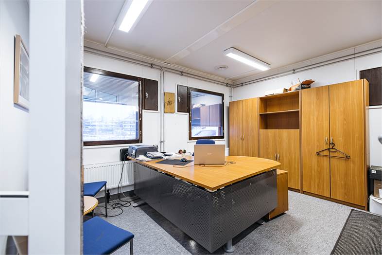 Rakennuksesta löytyy neljä reilun kokoista toimistohuonetta, myymälätila sekä hallitilakokonaisuus jonka yhteydessä nosto-ovi. Lisäksi pesuhalli kahdelle autolle, wc, keittiö sekä runsaasti varastotilaa.