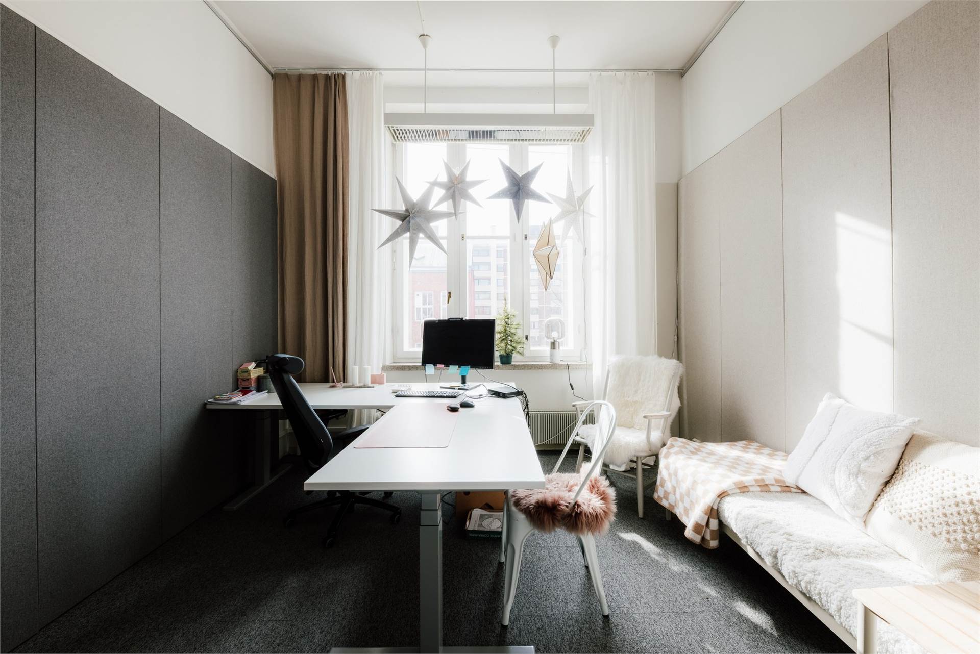 Huoneissa on huomioitu akustiikka.