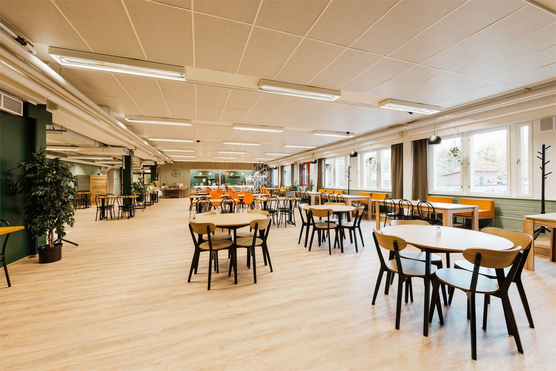 Ravintolasali on valoisa ja siisti