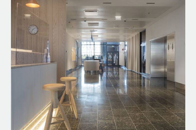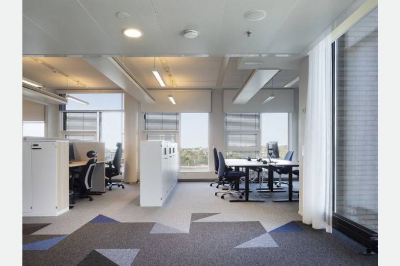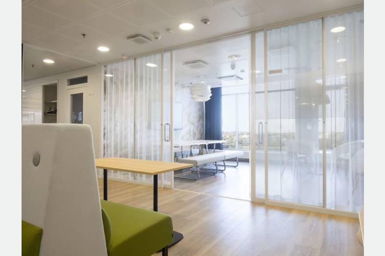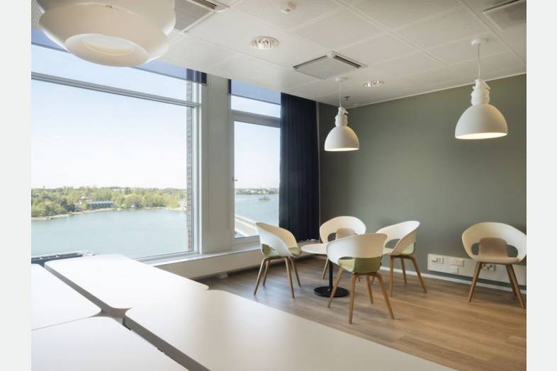 Pääkonttoritason toimitilaa merellisissä maisemissa.