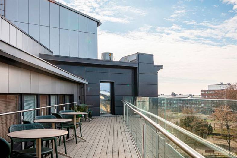 Kiinteistön käyttäjille on vuokrattavissa talon ylimmistä kerroksista neuvottelutiloja sekä ylimmän kerroksen sauna ja tapahtumatilaa.