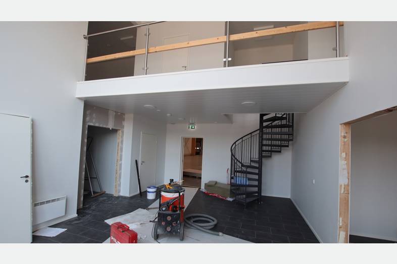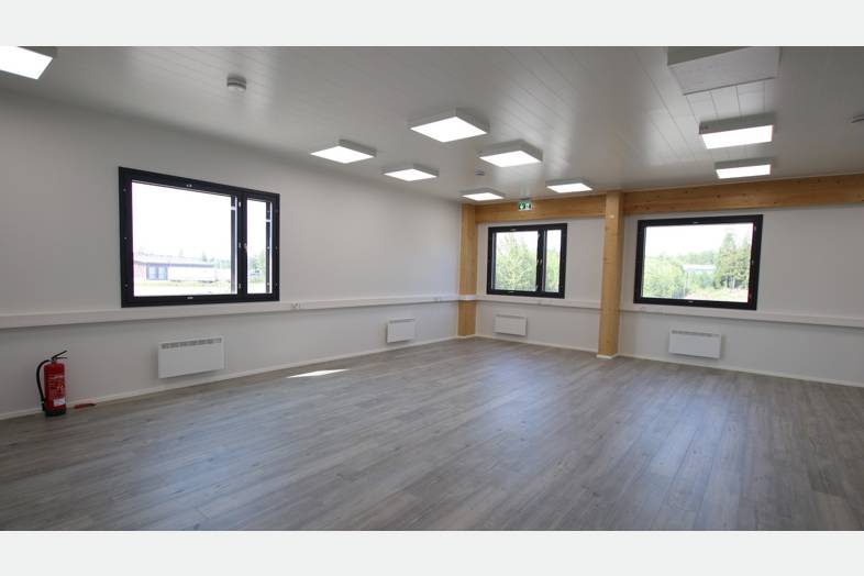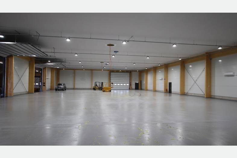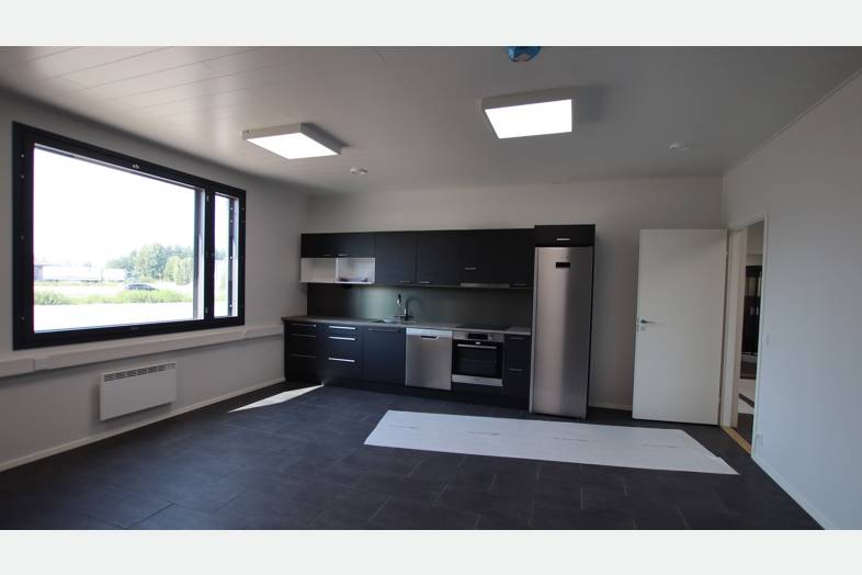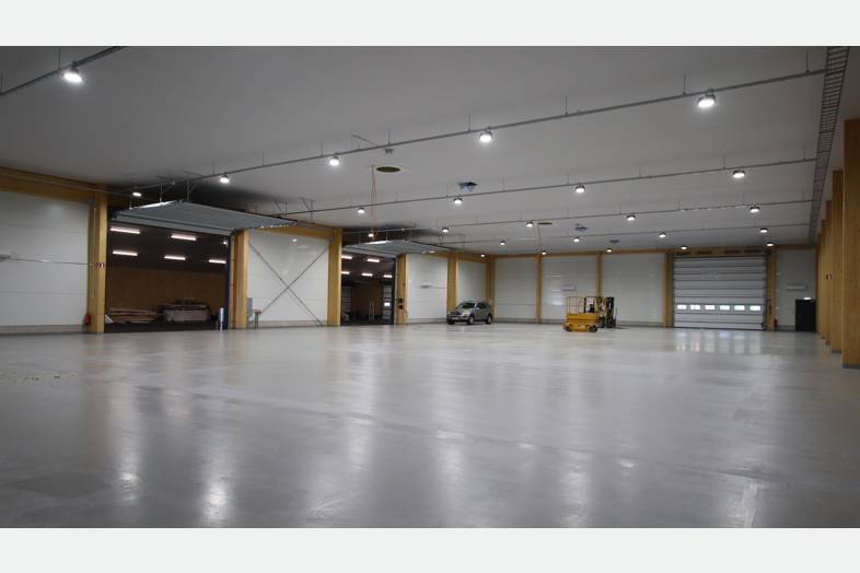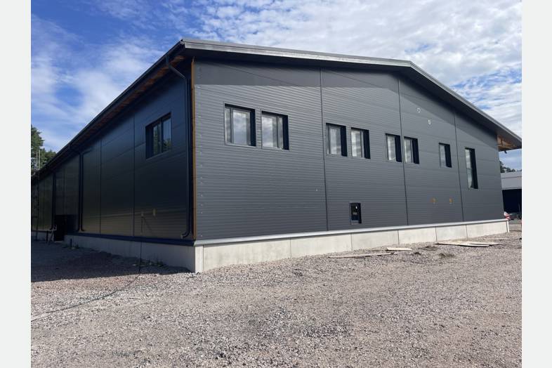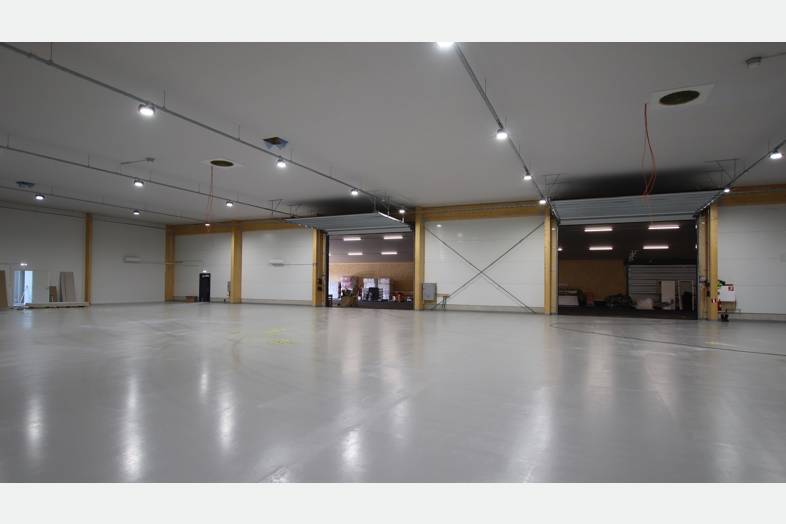 Tilakokonaisuus jossa 1 400m2 hallin lisäksi 300m2 toimisto- ja sosiaalitiloja kahdessa kerroksessa