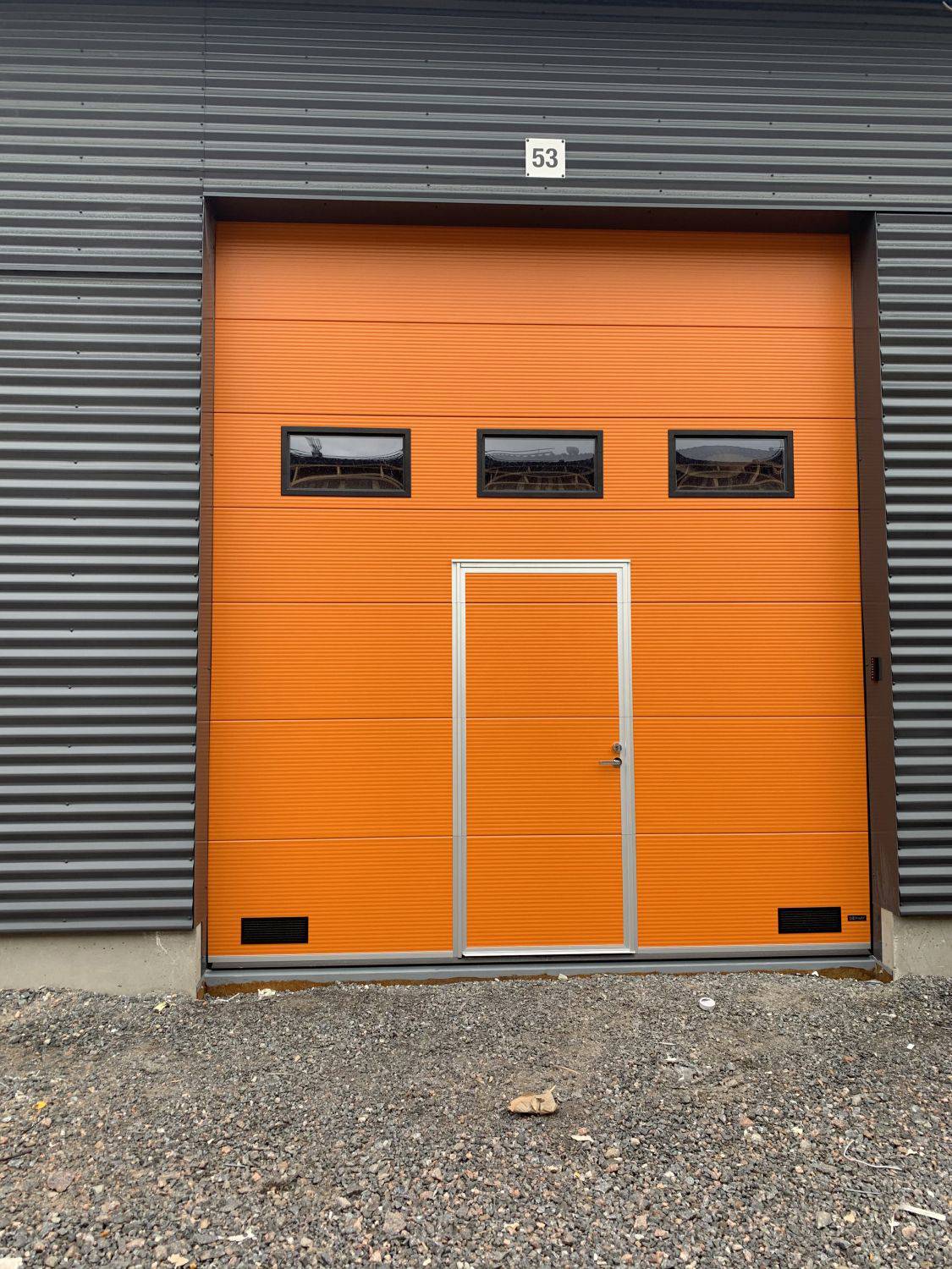 Sähköinen nosto-ovi ulkoa