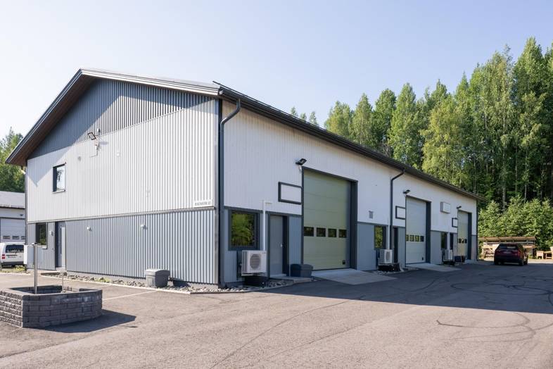 Muuramen Ratastiellä myytävänä kiinteistöyhtiön koko osakekanta ja myös vuokrattavana juuri pintaremontoitu teollisuushalli, jossa kolme erillistä halliosiota (n. 120, 140 ja 140 m2) sekä toisessa kerroksessa n. 110 m2 toimisto-/neuvottelu-,sos/saunatilat. Rakennuksen kerrosala n. 590 m2. Kussakin hallissa omat wc.t, toimisto/taukotilat, ilmalämpöpumppu lämmitys/viilennys, epoksilattiat, omat sähköliittymät, vesimittari, ledivalot, nosto-ovet. Reunimmaisessa 140 m2 hallissa lisäksi purunpoistojärjestelmä, paineilmaverkko ja oma koneellinen iv,. Omalla n. 2200 m2 tontilla. Mahdollisuus vuokrata koko kiinteistö tai osissa (vaikka yksi 120m2 tila). Soita ja sovi esittely. Vuokra koko hallikiinteistölle 3400 €/kk (alviton tila), 140 m2 halleille 1000 €/kk ja 120 m2 900 €/kk.